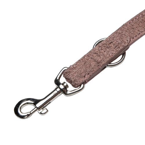 Hofgarten er en serie af super bløde halsbånd og liner i kalvelæder og ruskind, med lette kvalitets metaldele. Denne serie er specielt velegnet til små hunde, fordi det er så lette og bløde materialer, men kan også sagtens gå til de mellemstore. Serien fåes i flere farver, med matchende halsbånd, så der er noget for en hver. Snoren måler 2 meter, og kan justeres ind i tre forskellige længder, ved at koble karabinhagen sammen med ringene på snoren, så du nemt får formet et håndtage, eller fx halvere snoren, så den kan slåes om kroppen når hunden går løs. Breden på snoren variere alt efter størrelsen.