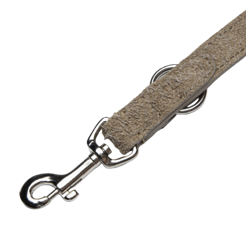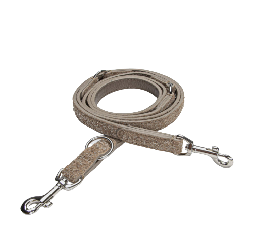 Hofgarten er en serie af super bløde halsbånd og liner i kalvelæder og ruskind, med lette kvalitets metaldele. Denne serie er specielt velegnet til små hunde, fordi det er så lette og bløde materialer, men kan også sagtens gå til de mellemstore. Serien fåes i flere farver, med matchende halsbånd, så der er noget for en hver. Snoren måler 2 meter, og kan justeres ind i tre forskellige længder, ved at koble karabinhagen sammen med ringene på snoren, så du nemt får formet et håndtage, eller fx halvere snoren, så den kan slåes om kroppen når hunden går løs. Breden på snoren variere alt efter størrelsen.