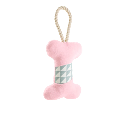 Blød bamse formet som et kødben. Bamsen har torv i enden som er perfekt til at lege tovtrækning med. Indeni har den også en sjov squeaker, som opfordrer til leg. Bamsen er næsten et must til en ny hvalp.