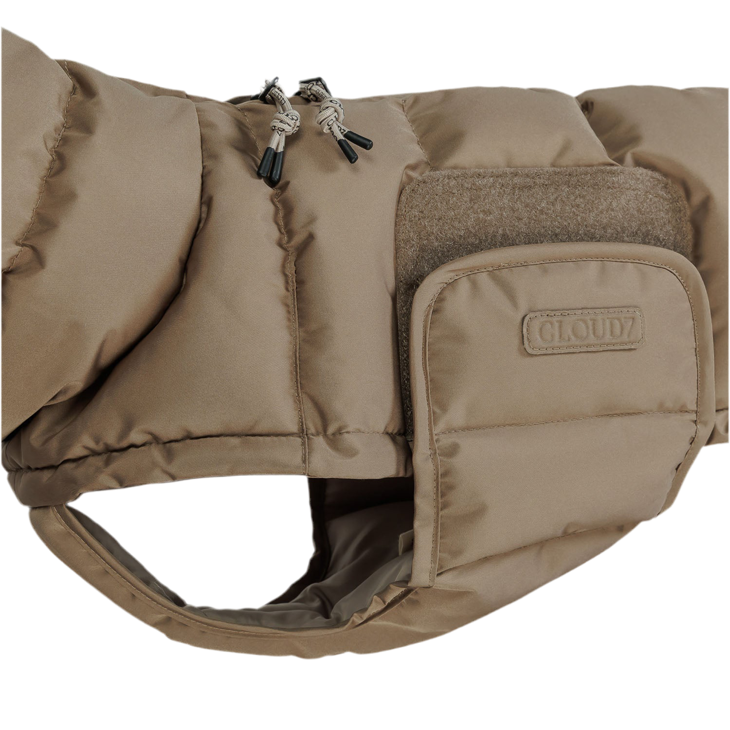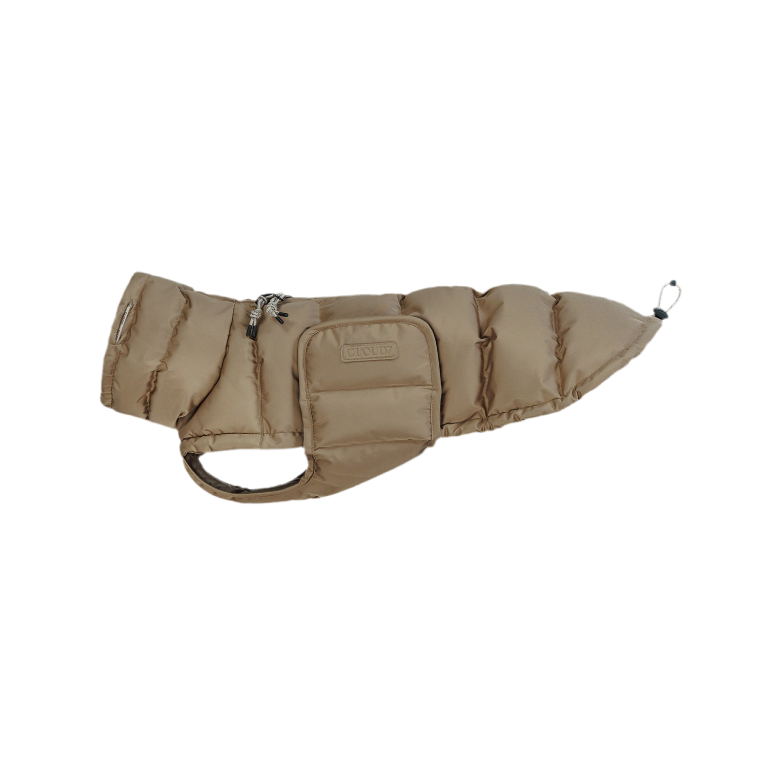 Vegansk hundejakke lavet af 100% bæredygtige materialer. Denne ekstra varme vinterhundejakke i Sandy Brown eller Light Olive er foret med øko-polstring lavet af genbrugte PET-flasker i stedet for dun.